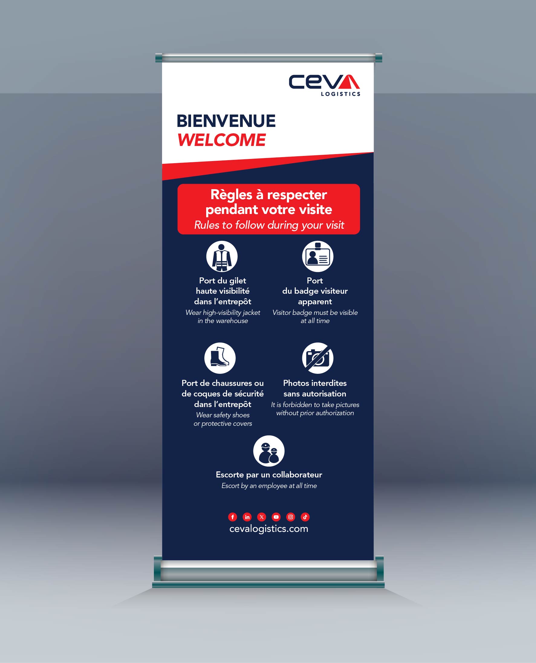 Professional roll-up banner for workplace visual management.