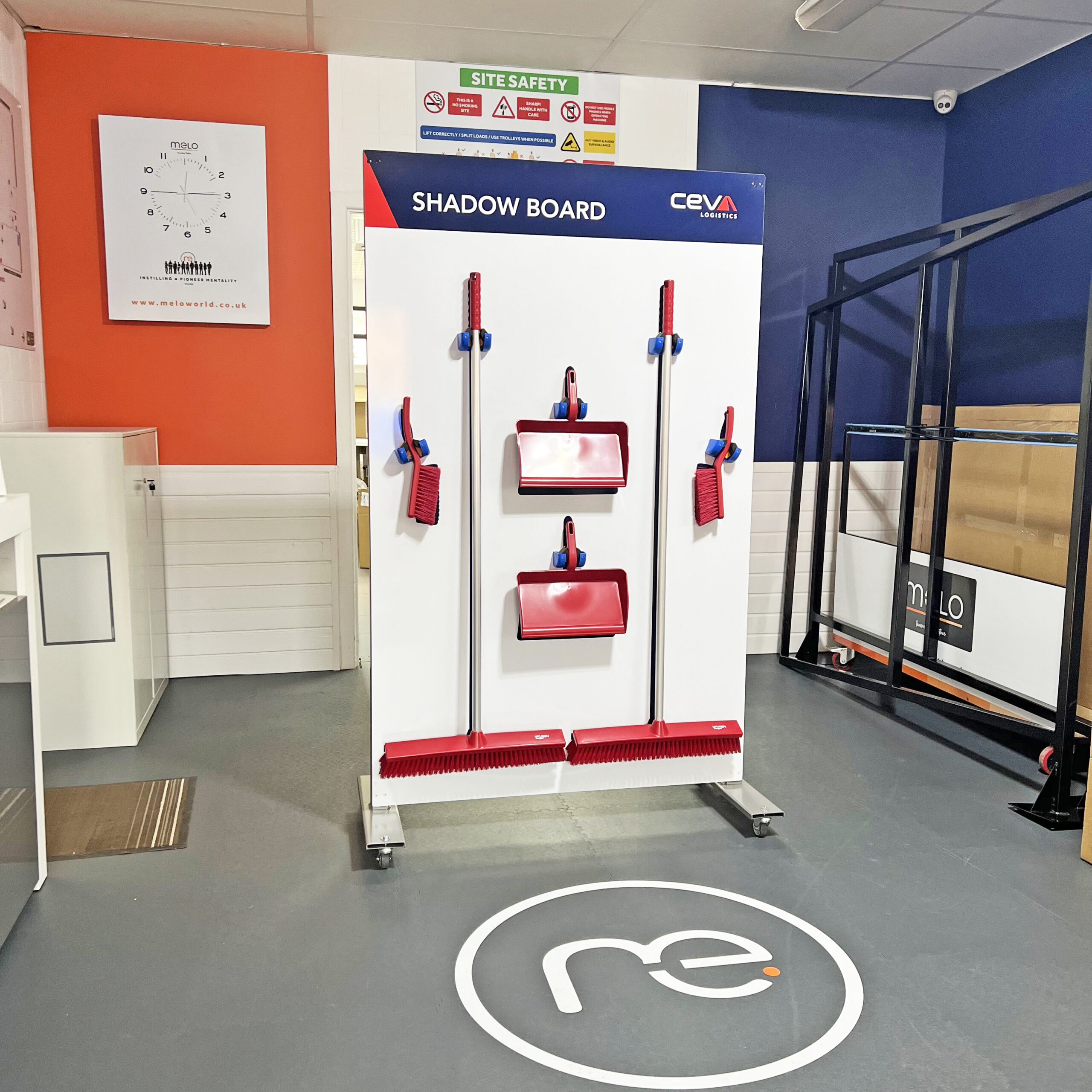 Boards mounted on steel, powder-coated frames with castors and brakes. Height: 1750 mm board surface (1850 mm overall) x Width of the board